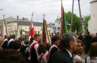 Przed kościołem Ojców Bernardynów Krzysztof Chojniak - prezydent miasta wygłosił przemówienie do mieszkańców. Następnie wieńce pod tablicą upamiętniają 25 rocznicę uchwalenia Konstytucji 3 Maja złożyli prezydent Chojniak, przewodniczący Rady Miasta - Paweł Szcześniak, posłanka - Elżbieta Radziszewska oraz poseł - Artur Ostrowski. Wieńce złożyło również kilkadziesiąt instytucji i organizacji.