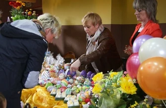 Większość świątecznych dekoracji przygotowali uczniowie moszczenickiej podstawówki. Od godz. 13.00 można już było oglądać stoiska rozmaitości, czyli wszystko, co związane jest ze zbliżającą się Wielkanocą. Była sprzedaż palm, ciast wielkanocnych, kwiatów, można było spróbować chleba pieczonego na zakwasie, do tego wędliny, smalec własnej roboty. Na koniec przeprowadzono aukcję przedmiotów wykonanych przez dzieci, rodziców i nauczycieli. Dochód z aukcji zostanie przekazany na zakup pomocy dydaktycznych dla uczniów Szkoły Podstawowej im. św. Stanisława Kostki w Moszczenicy.