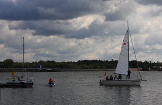 - Zasady są bardzo proste. Mamy tylko jedną kategorię open i wygrywa załoga, która przepłynie trasę jako pierwsza, bez dodatkowych przeliczników. Bieg trwa około 2,5 godziny i jest to tzw. „trójkąt ze śledziem”, czyli trasa po linii trójkąta z dodatkowym okrążeniem – wyjaśnił Medard Gilner, główny sędzia zawodów.