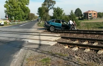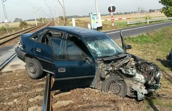 Starszy mężczyzna (ok. 65 lat) jadąc swoim oplem zagapił się i nie zauważył zamkniętych barierek na przejeździe kolejowym. Uderzył w nie, jedna z nich trafiła w szybę samochodu. Pojazd zatrzymał się na torach po czym uderzył w niego nadjeżdżający pociąg.