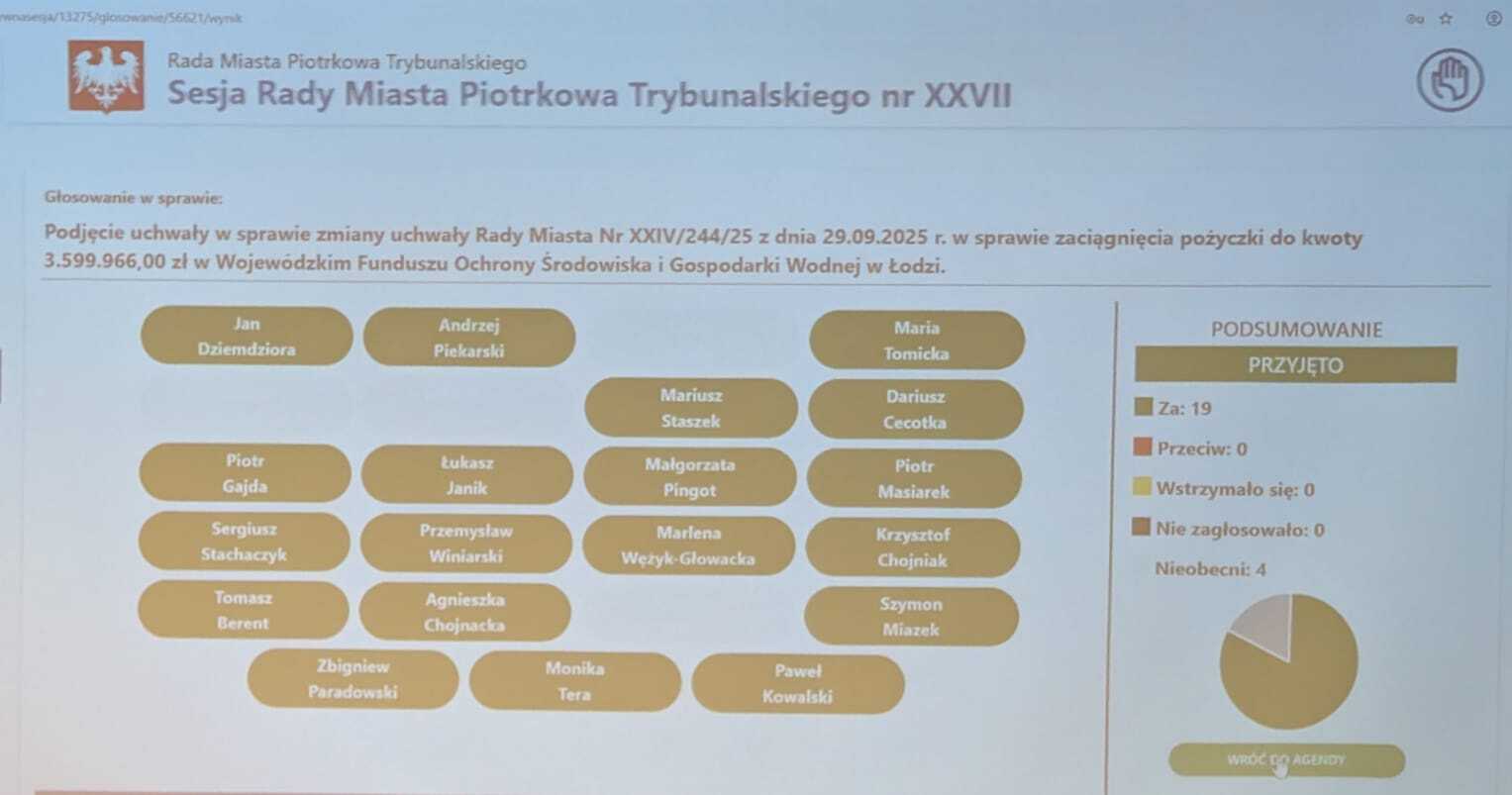 Radni "za" Zmianą Wieloletniej Prognozy Finansowej Miasta Piotrkowa Trybunalskiego;