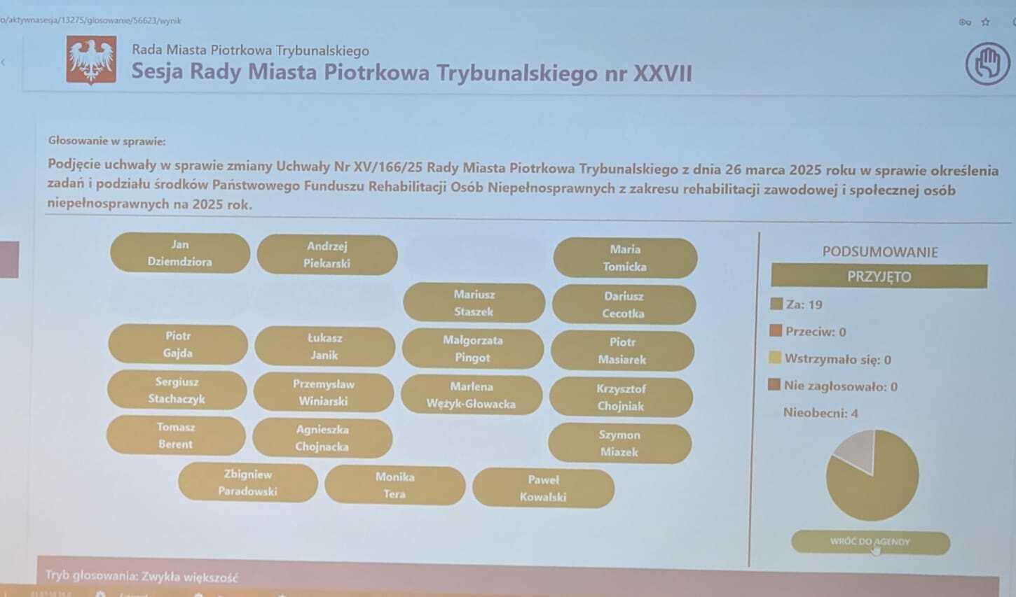 Radni "za" Zmianą uchwały dotyczącej utworzenia Piotrkowskiej Strefy Aktywności Gospodarczej.