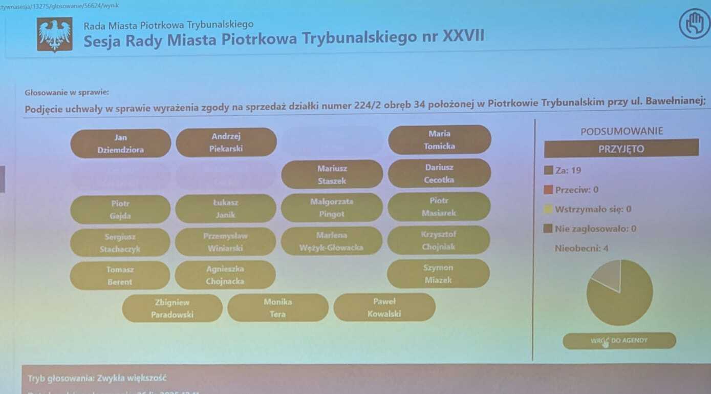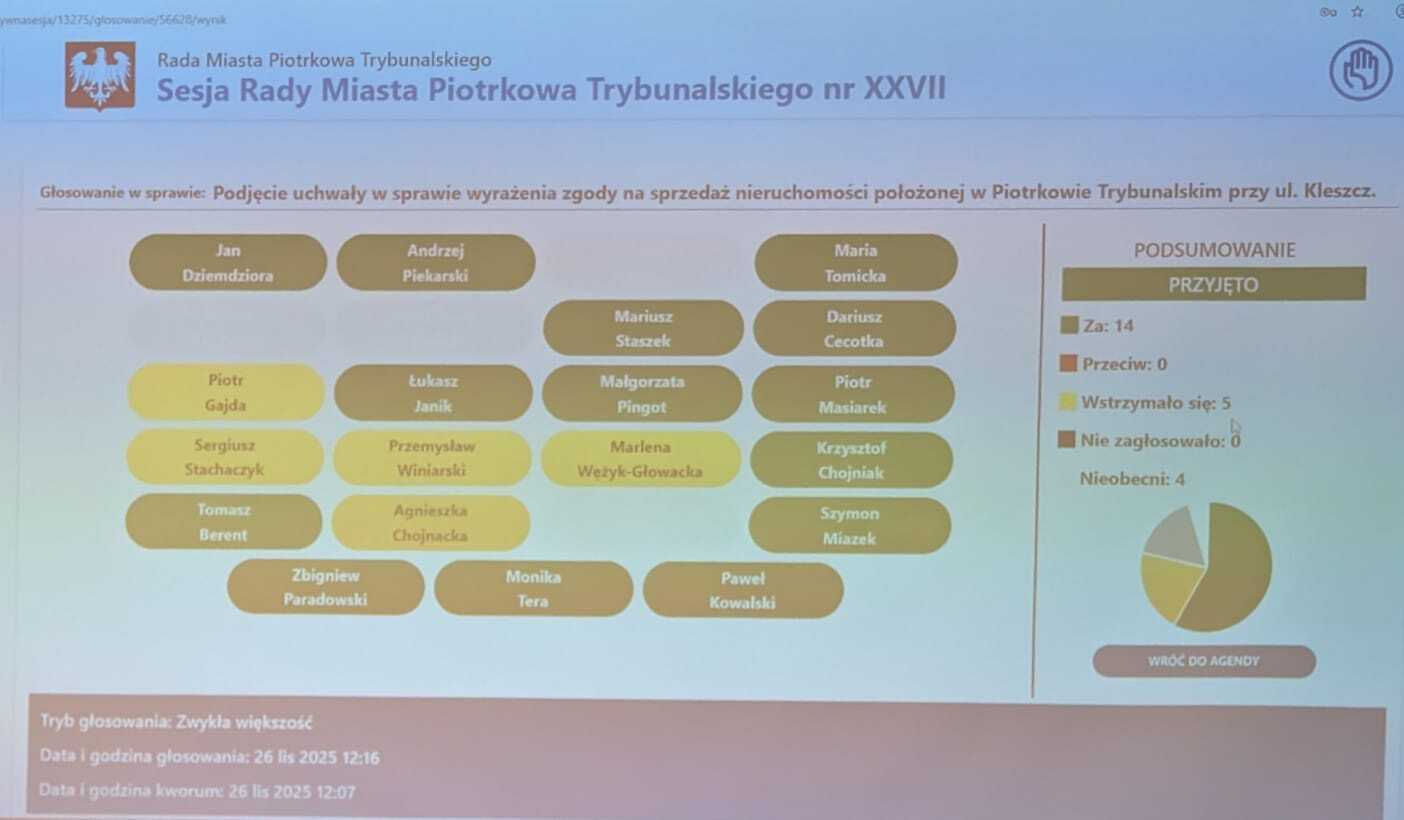Szybkie głosownia radnych w sprawach nieruchomości.