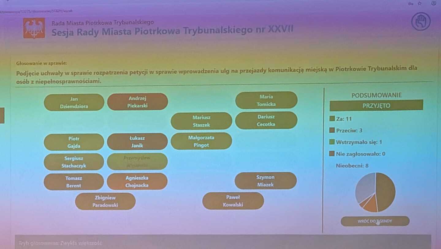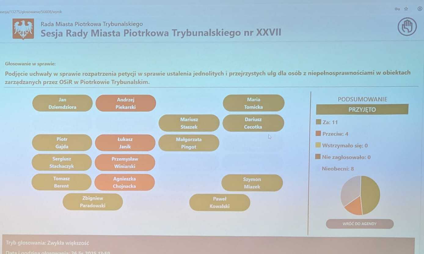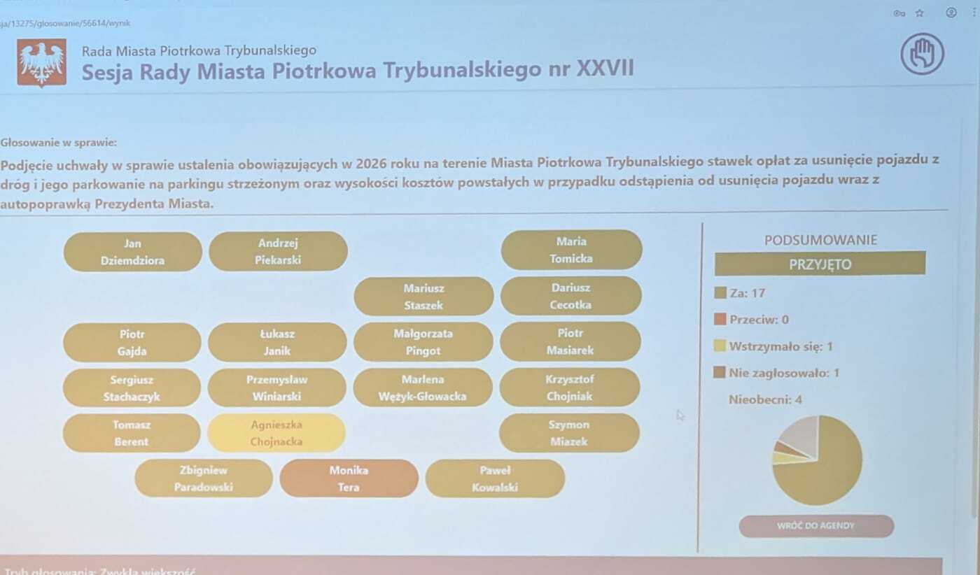 Głosowanie przesądziło o wprowadzeniu wyższych stawek. W atmosferze wyraźnego podziału 13 radnych opowiedziało się za podwyżką, po głosowaniu prezydent podziękował radnym za pozytywne głosy.