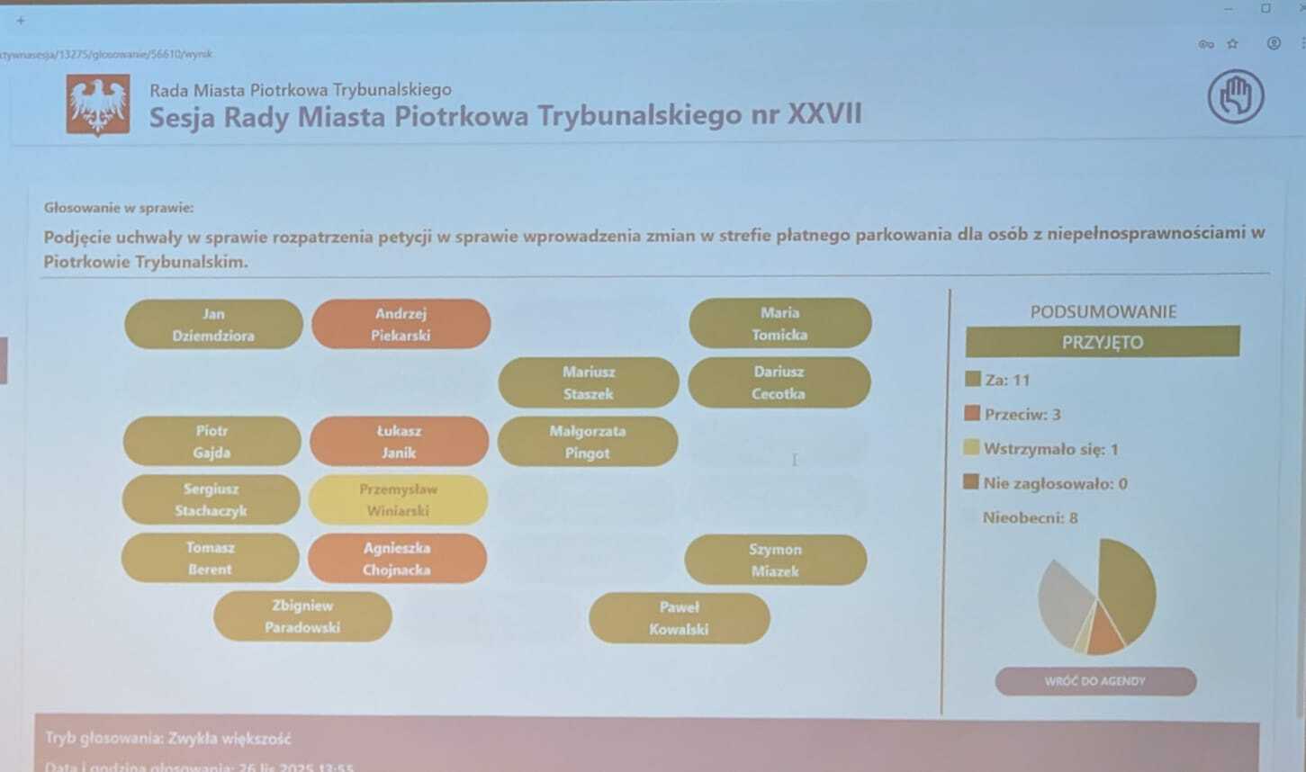 Radni zaczynają debatę nad punktem rozpatrzenia petycji o poszerzenie strefy bezpłatnego parkowania dla osób z niepełnosprawnościami.