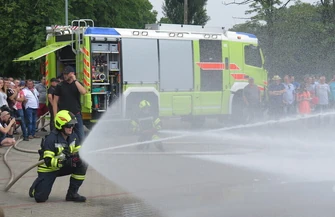 - Prezentujemy pojazdy oraz sprzęt pożarniczy. Mamy ze sobą zarówno drabinę mechaniczną, jak i dwa wozy ratowniczo-gaśnicze. Przeprowadzimy serię pokazów dynamicznych z ich użyciem. Wspomniana drabina jest na podwoziu mercedesa benz atego. Jej wysokość ratownicza to 30 metrów. Pojazd serii AT to najbardziej nietypowy jak na polski rynek samochód. Posiada kabinę, która jest zintegrowana z samą zabudową. Jego zbiornik pomieści 3000 litrów wody. Ma też działko zderzakowe - powiedział nam Piotr Łukasik, organizator wydarzenia.