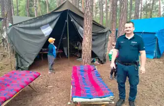 - W trakcie wizyty funkcjonariusze sprawdzili warunki bytowe uczestników, organizację obozowiska, dostępność środków łączności oraz możliwość szybkiej ewakuacji w przypadku zagrożenia. Zwrócono również uwagę na zabezpieczenie terenu obozu oraz przestrzeganie podstawowych zasad bezpieczeństwa. Dodatkowo policjanci przeprowadzili z harcerzami działania profilaktyczne, przypominając o zasadach bezpiecznego wypoczynku, właściwego zachowania się w lesie, nad wodą, a także o konieczności zachowania ostrożności w przypadku zmieniających się warunków atmosferycznych, które w okresie letnim mogą stanowić istotne zagrożenie. Działania funkcjonariuszy miały na celu zarówno kontrolę organizacyjną, jak i edukację uczestników w zakresie odpowiedzialnych postaw i właściwego reagowania na potencjalne zagrożenia – informuje asp. sztab. Izabela Gajewska, oficer prasowy KMP w Piotrkowie.