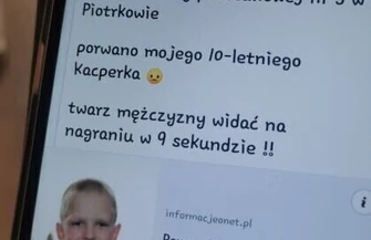 Zdjęcie, które obiega sieć przedstawia chłopca oraz informację, że 10-letniego Kacperka porwano spod Szkoły Podstawowej nr 3. O pomoc w poszukiwaniach apeluje zrozpaczona matka. Link odsyła do nieistniejącej strony, wykorzystującej w domenie nazwę jednego z głównych portali informacyjnych w Polsce.