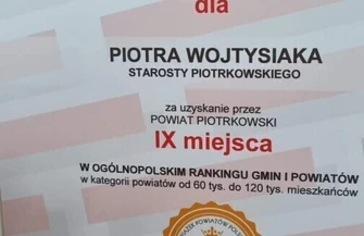 Powiat piotrkowski został wyróżniony w kategorii jednostek samorządu terytorialnego do 120 tysięcy mieszkańców. W porównaniu z poprzednim rankingiem powiat, prowadzony przez starostę Piotra Wojtysiaka, awansował o dwie pozycję, zostając tym samym najlepszym powiatem w województwie łódzkim.
