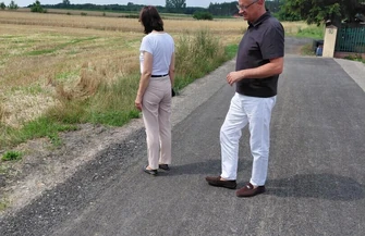 Pomimo upalnej pogody, wójt gminy Dariusz Magacz wraz ze swoją zastępczynią Marią Kopczewską wykonali objazd po najważniejszych inwestycjach realizowanych na terenie gminy. Głównym celem wizyty było skontrolowanie postępu prac drogowych prowadzonych na ul. Cmentarnej, gdzie modernizowana jest nawierzchnia na pięciu odcinkach.