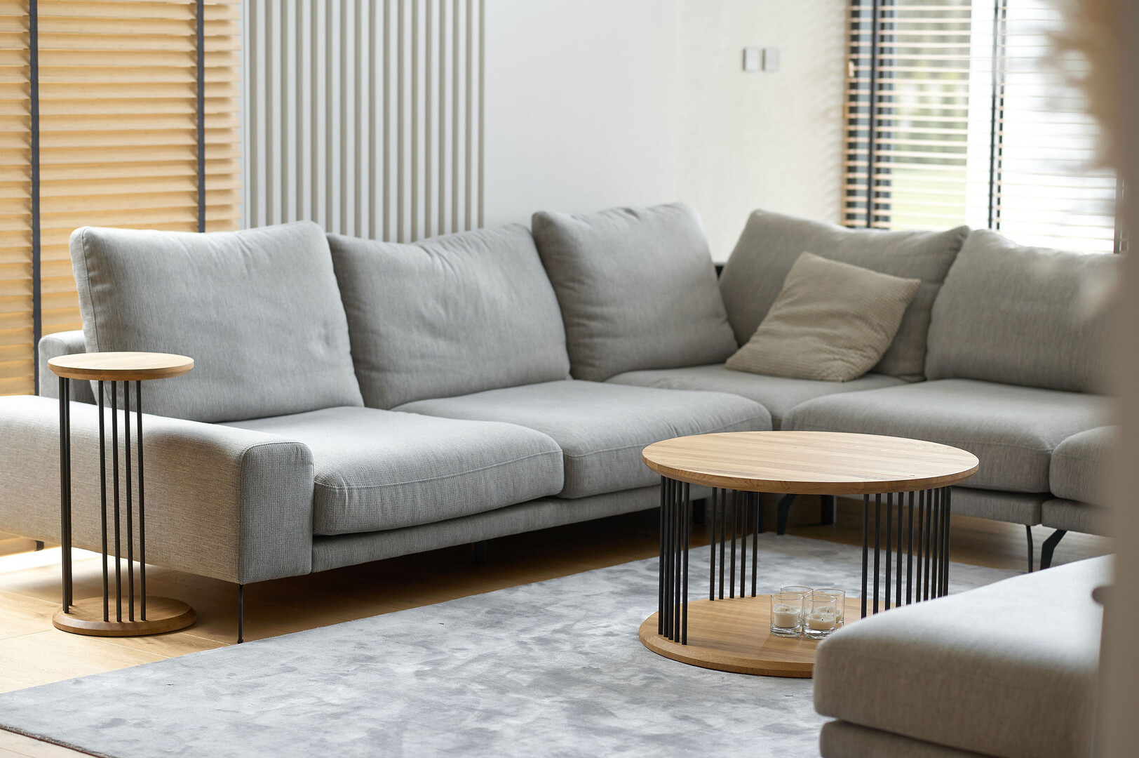 Z bliska widać to, czego nie widać na zdjęciach — grubość litego drewna, precyzję połączeń, sposób olejowania, stabilność konstrukcji.