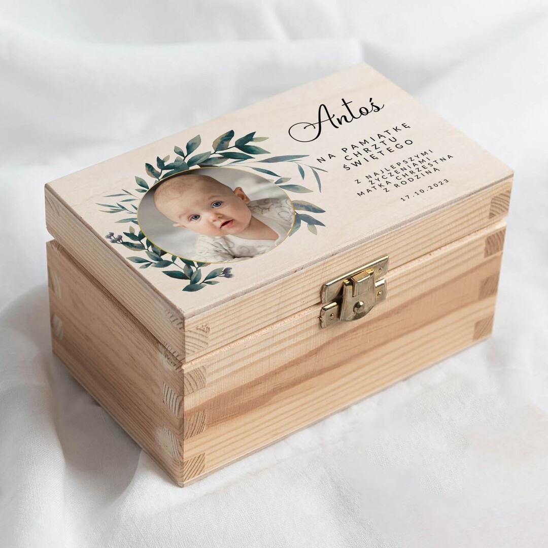 Drugą ciekawą propozycją jest drewniane pudełko na CHRZEST. To doskonały wybór dla osób, które szukają czegoś eleganckiego i trwałego. Taki upominek może służyć do przechowywania pamiątek z dzieciństwa: pierwszych bucików, zdjęć, kartek z życzeniami czy drobnych przedmiotów związanych z ważnymi momentami życia. Drewniane pudełko prezentuje się bardzo stylowo, a dzięki personalizacji nabiera jeszcze większej wartości.