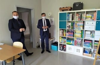 Przywożąc ze sobą słodkie upominki dla dzieci, urzędnicy jednocześnie wsparli placówkę środkami ochrony: maseczkami, rękawiczkami, fartuchami i płynami odkażającymi. Dyrektor Szansy Hanna Gural, odwdzięczyła się oprowadzeniem gości po nowej siedzibie Centrum. Starostowie byli pod wrażeniem, zarówno wielkości budynku, jak i nowoczesnych rozwiązań, ułatwiających dzieciom oraz ich opiekunom, codzienne zajęcia. Zadeklarowali też wsparcie ze strony powiatu, które pomoże Szansie w doposażaniu licznych sal terapeutyczno - edukacyjnych.
