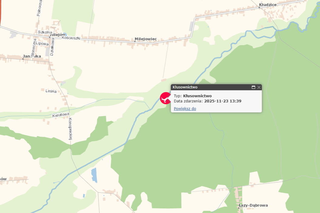 W związku ze zgłoszeniem na Krajowej Mapie Zagrożenia Bezpieczeństwa, dotyczącego „kłusownictwa”, dokonanym przez osobę anonimową w dniu 25 listopada 2025 roku w kompleksie leśnym w pobliżu miejscowości Fałek, gm. Rozprza pow. piotrkowskiego, woj. łódzkie funkcjonariusze KP w Gorzkowicach ujawnili porzuconego dzika, który był oskórowany i pozbawiony wnętrzności. W toku czynności niecierpiących zwłoki dokonano oględzin miejsca zdarzenia, a uczestniczący w czynnościach lekarz weterynarii pobrał z jego ciała wycinki pozostałości narządów wewnętrznych w celu przeprowadzenia badań specjalistycznych.