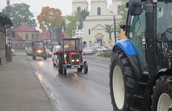 Chwilę po godzinie 11.00 na drogę wyjechały ciągniki - kierowały się z miejscowości Kafar i Jarosty do Srocka i w przeciwną stronę. W założeniu protest ma trwać jak najdłużej, a ciągniki mają jechać najwolniej, jak się da - i tym samym spowodować korek.