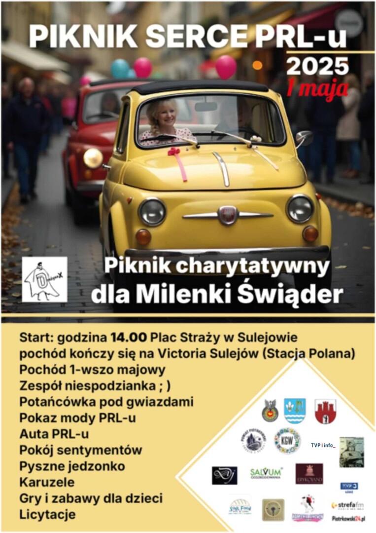 Już 1 maja 2025 roku odbędzie się na terenie sulejowskiej polanki (Stacja Polana) piknik pt "Serce PRL-u" podczas, którego zbierane będą pieniądze dla Milenki Świąder, która potrzebuje pilnej operacji kardiochirurgicznej. Wydarzenie rozpocznie się o 15:00. Sprawdź! Jakie atrakcje czekają na ciebie podczas tego wydarzenia.