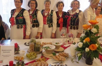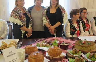 - Na naszym stole jest tradycyjny smalec. To nasza specjalność, którą robimy za każdym razem, kiedy bierzemy udział w takich akcjach. Do tego musi być słonina, boczek, cebulka, czosnek, jabłko kwaśne i zioła prowansalskie. Cieszę się, że takie spotkania są organizowane w powiecie. Dzięki temu możemy podzielić się przepisami i wzbogacać nasze potrawy - mówiły Iwona Wlaźlak i Anna Gieszcz z KGW z Bogusławic.