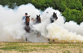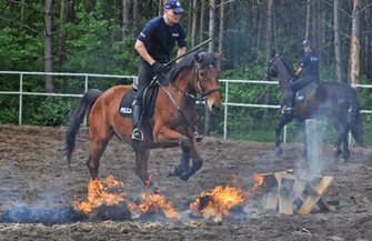 Drugiego dnia, na terenie bazy Oddziałów Prewencji w Łodzi, przeprowadzono ćwiczenia z zakresu współdziałania pododdziału konnego z pododdziałami zwartymi policji przy przywracaniu naruszonego porządku publicznego.