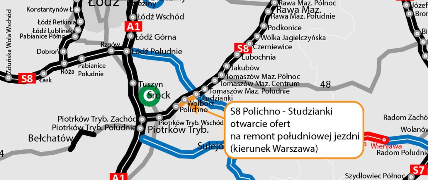 Cztery firmy zgłosiły chęć wyremontowania 9-kilometrowego odcinka drogi ekspresowej S8 między Polichnem i Studziankami. Wszystkie oferty mieszczą się w kwocie, jaką GDDKiA zamierza przeznaczyć na ten cel (blisko 60,8 mln zł). Najtańszą ofertę w wysokości blisko 37,1 mln zł złożyła firma Strabag, a najdroższą, opiewającą na ponad 55,3 mln zł firma Budimex.