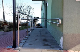 Zmieniło się także wejście od tyłu budynku. Pojawiły się nowe schody, barierka i zadaszenie.