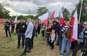 W trakcie uroczystości przez rondo przejeżdżali dwukrotnie członkowie Straży Obywatelskiej informując przez megafony o zagrożeniach ze strony imigrantów.