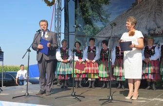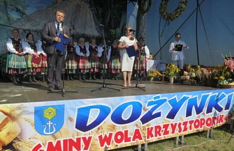 Po zakończeniu mszy świętej polowej, rozpoczęto część oficjalną, życzenia rolnikom złożyli m.in. wójt Roman Drozdek, przewodniczącą Rady Gminy Maria Głowacka oraz poseł Grzegorz Wojciechowski,