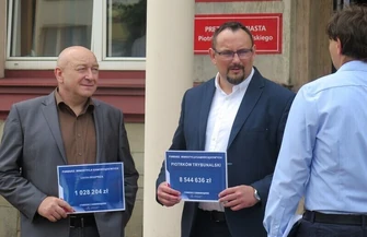 Kilkadziesiąt minut później kolejne pieniądze zostały przekazane samorządowcom z Piotrkowa i powiatu piotrkowskiego. Tym razem z Funduszu Dróg Samorządowych. - Dofinansowania będą przeznaczone na osiem inwestycji. Dwie będą realizowane w Piotrkowie, sześć w gminach powiatu piotrkowskiego. To łącznie prawie 16 mln zł. Średnio, patrząc na cały powiat, dofinansowanie stanowi 60% kosztów, czyli około 9 mln zł. Można się tylko cieszyć z tej pomocy, która płynie do naszych samorządów - mówił Karol Młynarczyk, wicewojewoda łódzki.