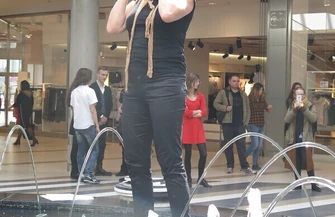 Od kilku lat performerzy w ramach piotrkowskich Interakcji prezentują się w naszej galerii handlowej. Ich ulubionym miejscem jest oczywiście focusowa fontanna. Klienci galerii chętni przystawali, by popatrzeć, by pokręcić z niedowierzaniem głową, niektórzy robili zdjęcia, performerów zaczepiały dzieci, zachęcając do zabawy.