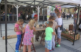 - Na stanowisku średniowiecznego garncarza razem z dziećmi uczymy się robić naczynia gliniane metodą wałeczkową. To metoda znana już od neolitu, a wykorzystywana aż do XX wieku. Nie stosuje się przy niej koła garncarskiego, a polega na zręczności własnych palców - tłumaczył jeden z wystawców. Przy jego stoisku nie zabrakło dzieci.