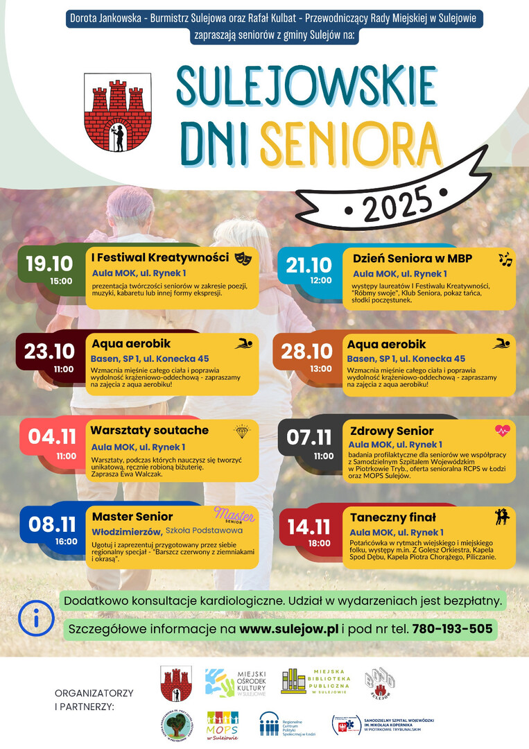 Mieszkańcy gminy Sulejów po raz kolejny udowodnili, że wiek nie ma żadnego wpływu na twórczą energię i radość życia. Podczas I Festiwalu Kreatywności „Aktywny Senior w Gminie Sulejów 2025”, który odbył się w auli multimedialnej, seniorzy zachwycili publiczność oraz jury swoją pomysłowością, talentem i niezwykłą energią. W niedzielę, 19 października 2025 roku, aula multimedialna w Sulejowie stała się miejscem wyjątkowego wydarzenia – I Festiwalu Kreatywności „Aktywny Senior w Gminie Sulejów 2025”.