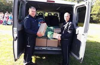Policjanci przywieźli ze sobą zebrane przez nich koce, kołdry, żywność, które przekazali poszkodowanej rodzinie.