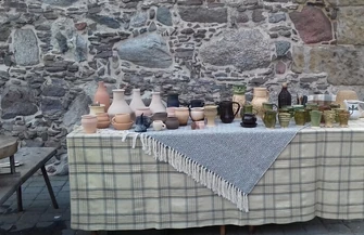 Na zamkowym dziedzińcu, tradycyjnie już, nie zabrakło rycerzy. Uczestnicy spotkania mogli przymierzać rycerskie zbroje oraz sprawdzić swe siły w walce na miecze czy strzelaniu z kuszy do celu. Był też warsztat garncarski, a chętni mogli spróbować swych sił w lepieniu naczyń na tradycyjnym kole garncarskim. Dla najmłodszych przygotowane zostały też warsztaty plastyczne, podczas których dzieci wykonywały maski zdobione kolorowymi cekinami.
