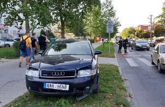 Na ulicy Słowackiego przy Kobyłeckiego zderzyły się hyundai i audi. Okoliczności zdarzenia wyjaśniają policjanci. Skutki stłuczki - płyny eksploatacyjne na jezdni - usuwali strażacy.
