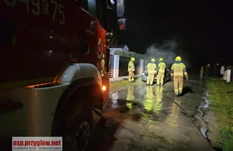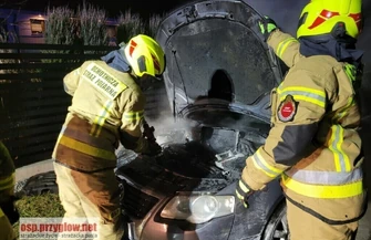 Około godziny 18 informację o pożarze otrzymali strażacy z PSP w Piotrkowie. Na miejsce zdarzenia wysłano dwa zastępy straży pożarnej z Przygłowa i Piotrkowa. Jak informują strażacy z KSRG OSP Przygłów, ogień wydobywał się z dolnej części komory silnika samochodu.