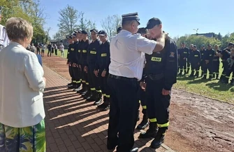 Nagrody w postaci bonów pieniężnych z przeznaczeniem na zakup sprzętu i wyposażenie, puchary oraz medale wręczyli starosta powiatu piotrkowskiego Piotr Łączny, wójt gminy Grażyna Lasek, komendant miejski PSP w Piotrkowie Paweł Dela. prezes ZOG ZOSP RP w Łękach Szlacheckich Adam Burdziak.