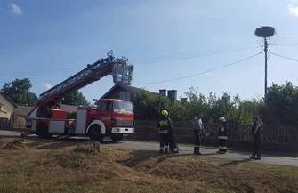 Do nietypowej interwencji zostali wezwani w środę strażacy ochotnicy z Przedborza oraz Jednostki Ratowniczo-Gaśniczej z Radomska. Okazało się, że ich pomocy potrzebuje młody bocian.
