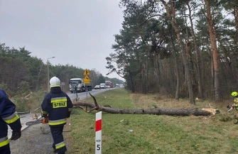 Strażacy po przybyciu na miejsce zlokalizowali dwa pochylone drzewa z naruszonymi korzeniami, a następnie podjęli decyzję o całkowitym ich wycięciu. Na miejsce poprosili o przyjazd patrolu policji w celu zablokowania krajowej "dwunastki" na czas prowadzonych działań - relacjonują druhowie, podkreślając, że dzięki szybkiej i skoordynowanej akcji, utrudnienia w ruchu nie trwały zbyt długo.