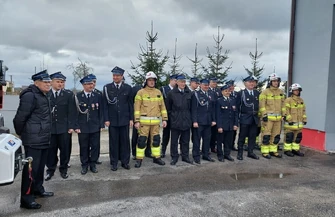 Następnie głos zabrali zaproszeni goście, którzy jednogłośnie pogratulowali nowego wozu i życzyli po strażacku “tyle powrotów, ile wyjazdów”. Strażacy dostali również upominek od starosty Piotra Wojtysiaka w postaci hełmu strażackiego.