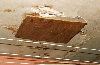 - Sufit zaczął nam spadać w nocy. Dzisiaj rano spadł całkowicie. Mąż leżał na kanapie, tynk mu zleciał na głowę i trochę pokaleczył. Tak się teraz mieszka. Wcześniej inną dziurę załataliśmy deską montując ją na wkręty – mówi pani Barbara Koprowska. - Nad nami jest strych. Nikt tam nie mieszka, ale boimy się, że w końcu wszystko się zawali, bo dach przecieka i deszczówka wlewa się nam do mieszkania - dodaje Jerzy Trojanowski.