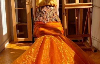 Zarówno Julia, jak i Paweł, w swoich realizacjach zastosowali niekonwencjonalne tworzywa. Julia do swojej sukni wykonała nietypowy gorset z prawdziwej kory sosny, nawiązując tym do pochodzenia i historii bursztynu. Natomiast Paweł z plastikowych butelek i farby do szkła stworzył bursztynową kompozycję, wylewającą się z sukni niczym z morskich fal.