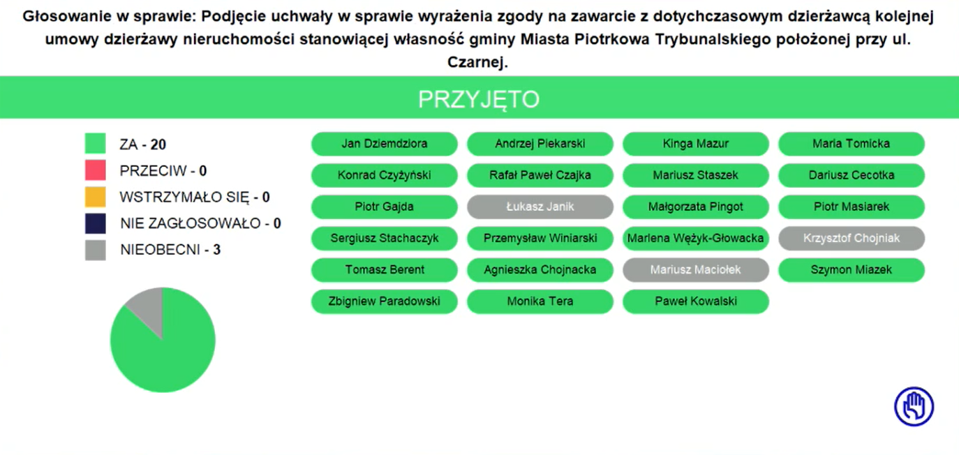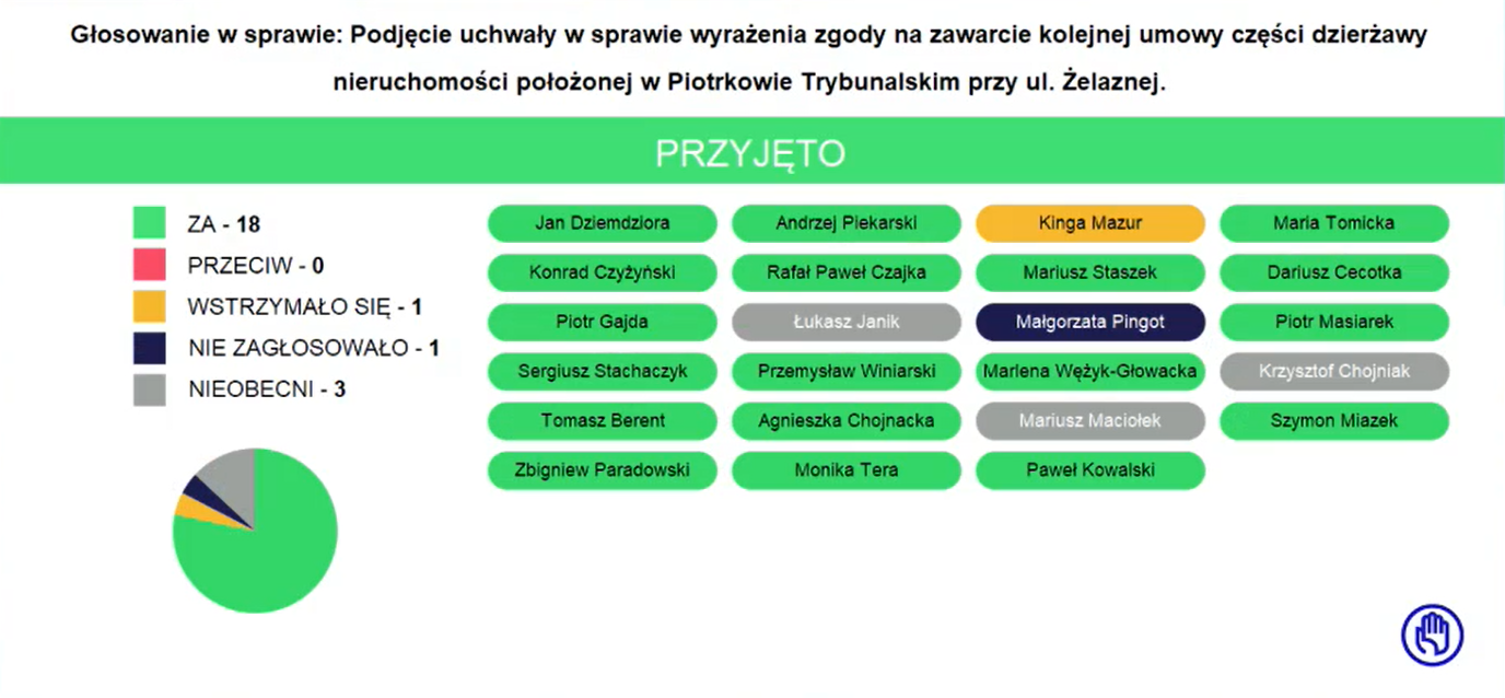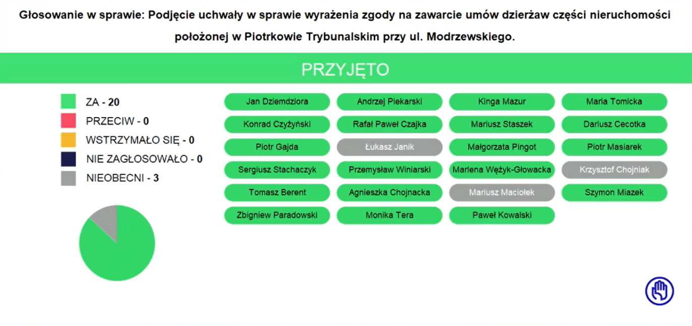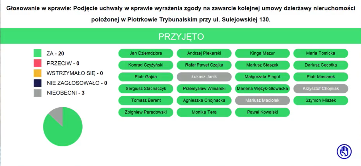 Wiceprzewodniczący Rafał Czajka o zabraniu głosu przez mieszkańców Piotrkowa: "Zachęcam mieszkańców do brania udziału w komisjach", "Jestem jednak zmuszony odmówić głosu dwóm panom, jacy przyszli zadać pytania Mieczysławowi Kacperkowi". "Szanując panów zainteresowanie, sami mówicie, że nie macie interesu prawnego sprawą", "To wypacza charakter dzisiejszych obrad, zapraszam do kontaktu podczas komisji".