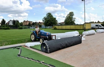 Prace przy układaniu murawy mają potrwać jeszcze kilka dni. Następnie gumowa nawierzchnia musi zostać jeszcze ułożona na drugim z boisk. Po zakończeniu tych prac na obiekcie zainstalowane zostaną jeszcze elementy wyposażenia, m.in. bramki oraz piłkochwyty.