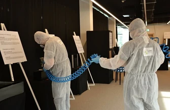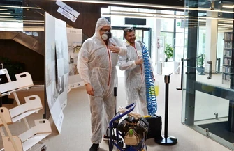Piotrkowska mediateka przygotowuje się do ponownego otwarcia wystaw edukacyjnych. W czwartek w obiekcie odbyła się nanotechnologiczna dezynfekcja powierzchni wystawowych (eksponatów i często dotykanych elementów).
