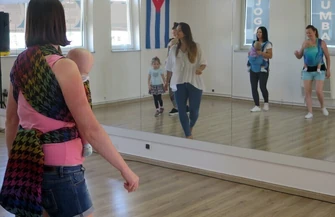 Zajęcia odbywają się w jednej z piotrkowskich szkół tańca. Młode mamy ćwiczą bachatę, czyli sensualny taniec pochodzący z Dominikany.