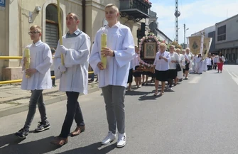 To jest wielka tajemnica wiary. W tym chlebie, który smakuje jak bożonarodzeniowy opłatek, jest żywy Bóg, jest żywy Chrystus. Dziewczynki, które będą dziś sypały kwiatami na ulicach miasta, robią to właśnie dla Niego. Jeśli dziś pójdziesz w procesji, uklękniesz na ulicy, to zrobisz to właśnie dla Niego. To On jest najważniejszy. Nie ksiądz czy kawałek złota w monstrancji, ale Bóg. Żywy Chrystus, który jest ukryty w tym małym opłatku. To jest właśnie istota dzisiejszego święta – mówił ks. Mariusz Jersak, proboszcz parafii pw. św. Jacka i św. Doroty w Piotrkowie.