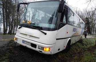 Do groźnie wyglądającego zdarzenia doszło w Bujnach pod Piotrkowem. Do przydrożnego rowu na zakręcie wpadł autobus, tir i kilka samochodów osobowych. Kilkaset metrów od tego zdarzenia problem z utrzymaniem się na drodze miało kilku kolejnych kierowców. - Nikomu nic się nie stało. Te pojazdy w zasadzie już nie jechały. Jest tak ślisko, że po prostu ześlizgnęły się do rowu. W sumie było tutaj chyba z siedem pojazdów - mówi świadek zdarzenia.