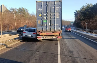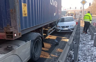 W tym miejscu samochód ciężarowy zepchnął seata leona na bariery energochłonne. Więcej informacji podamy niebawem.