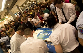 Na koniec imprezy gościom galerii podano imponujący tort urodzinowy, ważący blisko 70 kg, który przygotowała Cukiernia Sowa.