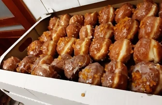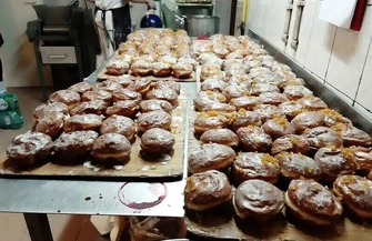 A jak się przygotowuje te smakołyki? - My robimy tradycyjną metodą, tak jak robiło się to przez lata. Żadnych polepszaczy. Bardzo ważne jest też nadzienie. Mamy pączki z wiśnią, staropolskie, z różą i nowość - z jagodą kamczacką – wyjaśnia Kamil Migdał z piotrkowskiej Cukierni Migdał.