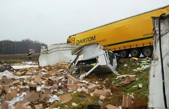 Zderzyły się tam dwa tiry. Prawdopodobnie jeden z uczestników wypadku zasnął za kółkiem - informuje podinspektor Artur Szczegielniak, naczelnik Wydziału Ruchu Drogowego KMP w Piotrkowie.